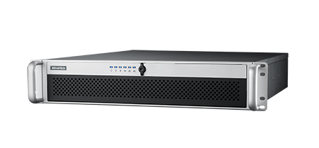 Four shock-resistant hot-swap disk trays supporting 3.5" or 2.5" SAS/SATA drives for RAID 5/10 application, one slim ODD, and two 2.5" internal drives